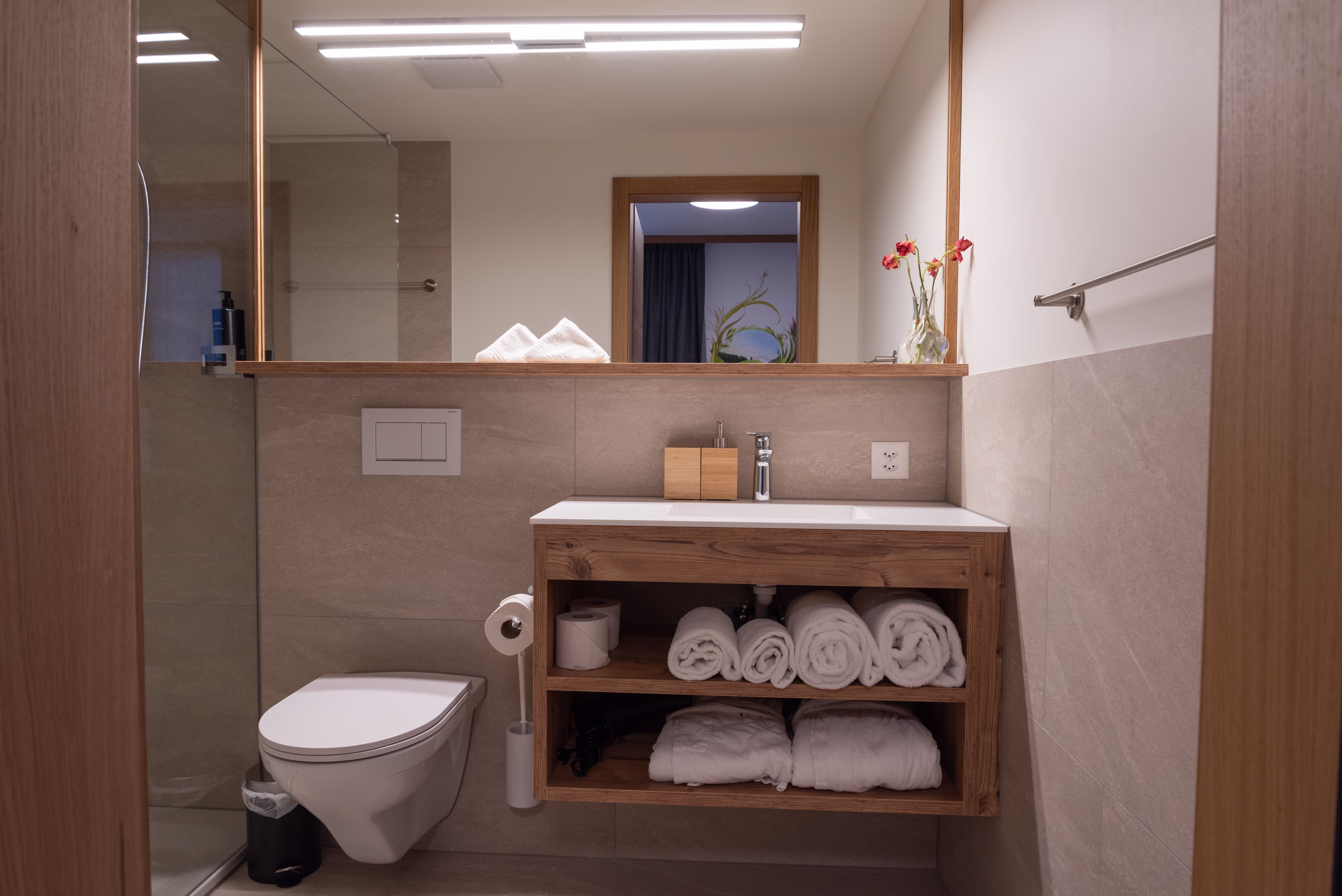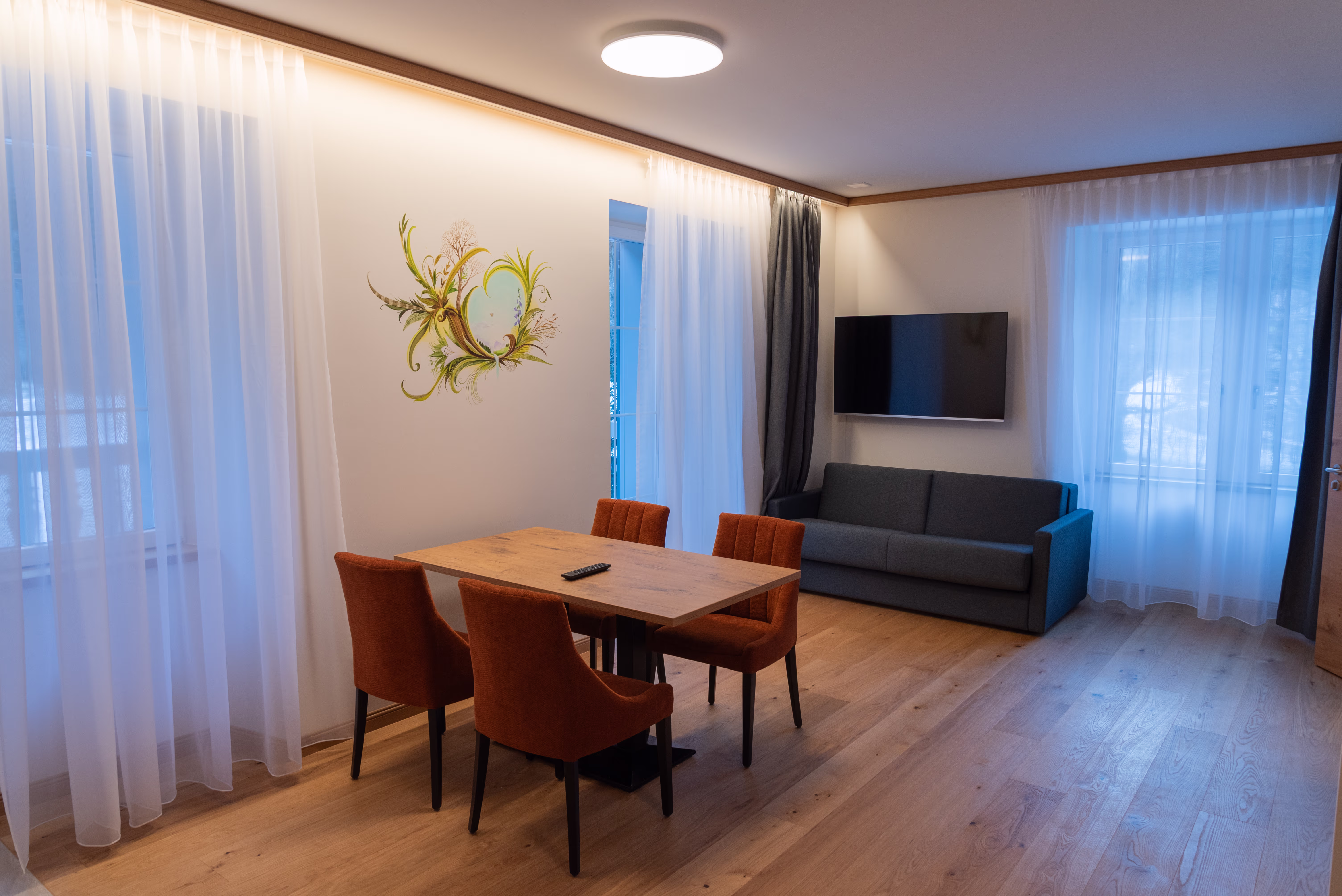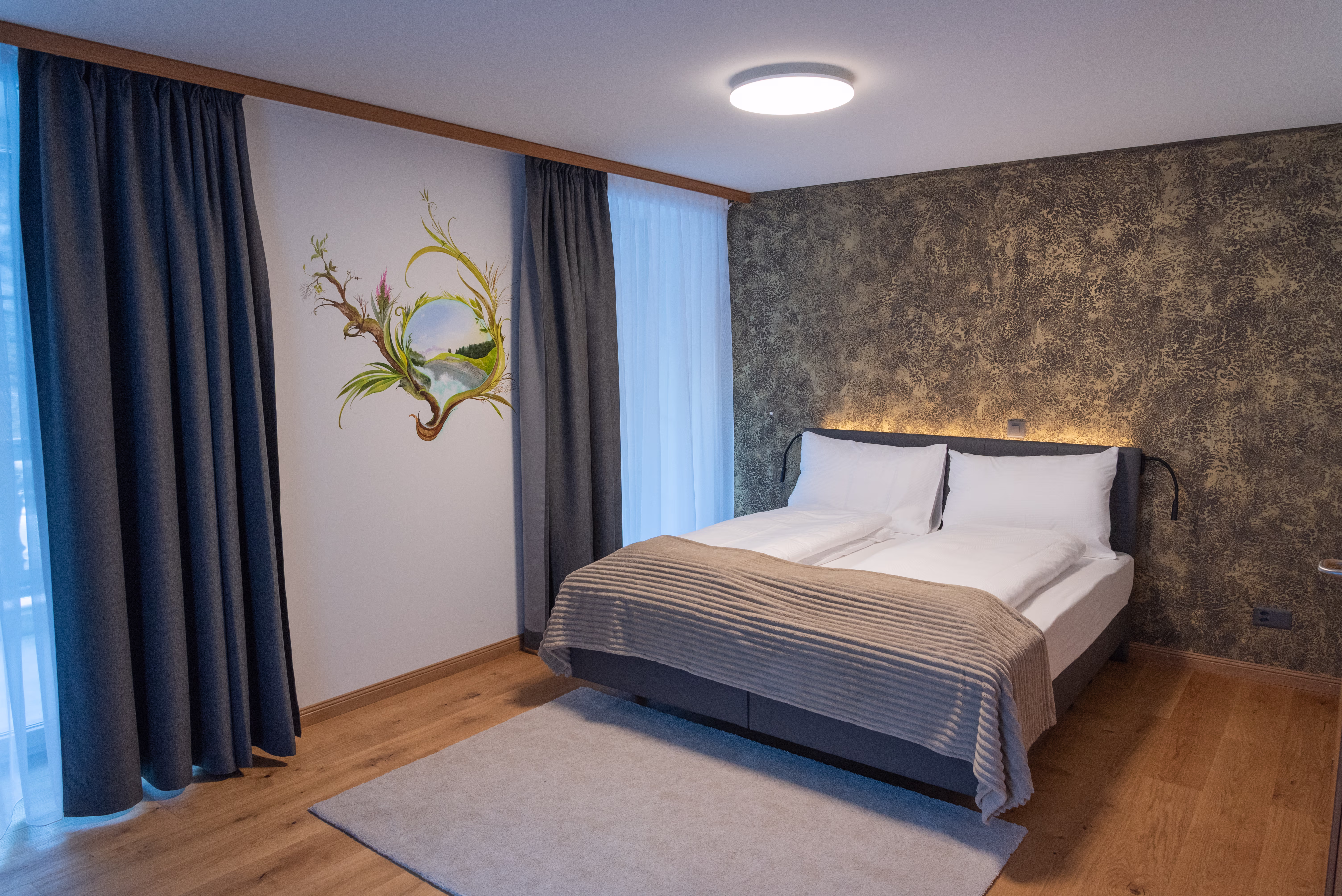 Our boutique property features 9 beautifully crafted rooms and 10 spacious apartments, welcoming up to 60 guests into spaces shaped by comfort, calm, and natural beauty. Each room opens onto sweeping mountain views. An invitation to breathe the crisp alpine air and let the landscape settle into you.